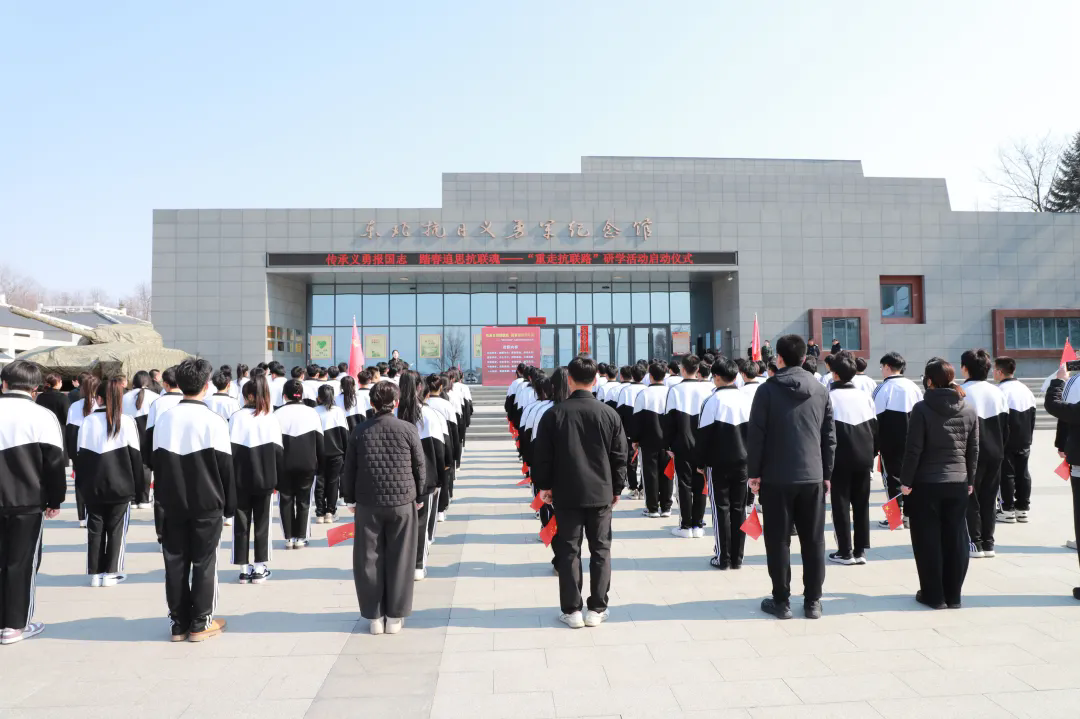 研学队伍整齐排列在东北抗日义勇军纪念馆广场前,启动仪式上,职教中心学生代表深情诵读了抗日英雄苗可秀、孙铭武的战地家书。那些对父母的牵挂、对妻儿的思念,以及“为国家争独立,为民族争生存”的铿锵誓言,让在场所有人读懂了抗战先辈们“捐躯赴国难,视死忽如归”的英雄气概。
