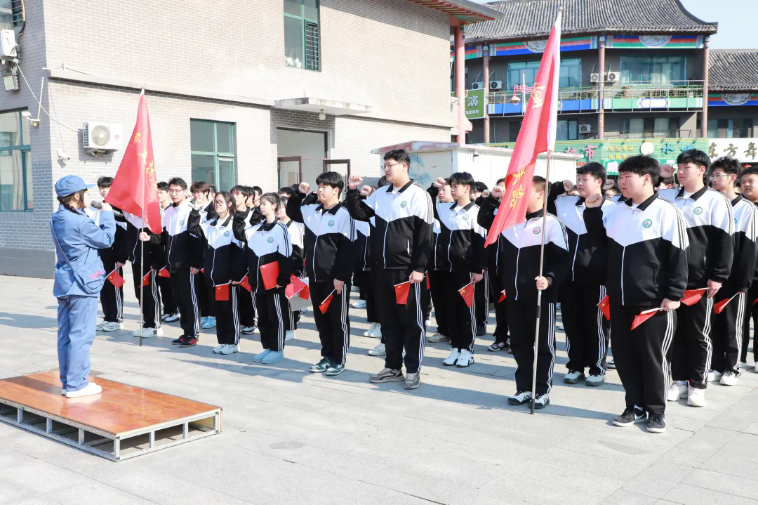 最后,东北抗日义勇军纪念馆馆长王强为研学团队授旗。这面旗帜承载着历史的荣光,也寄托着传承红色基因的责任与使命。