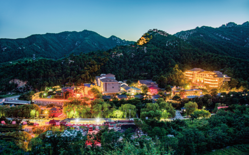 美丽的大朝阳温泉山城旅游度假区位于辽宁省历史文化名城北镇市城西6.5公里处,毗邻医巫闾山国家级自然保护区,是一家集旅游观光、餐饮住宿、会议接待、温泉泡汤、养生康体、亲子研学、党建团建、休闲度假、写生采风、康养旅居为一体的国家AAAA级旅游景区和三星级涉外多功能酒店。总建筑面积15000平方米,年接待游客近20万,是辽宁金实集团投资兴建的综合性度假景区,现已成为北镇古城一张靓丽的旅游名片。