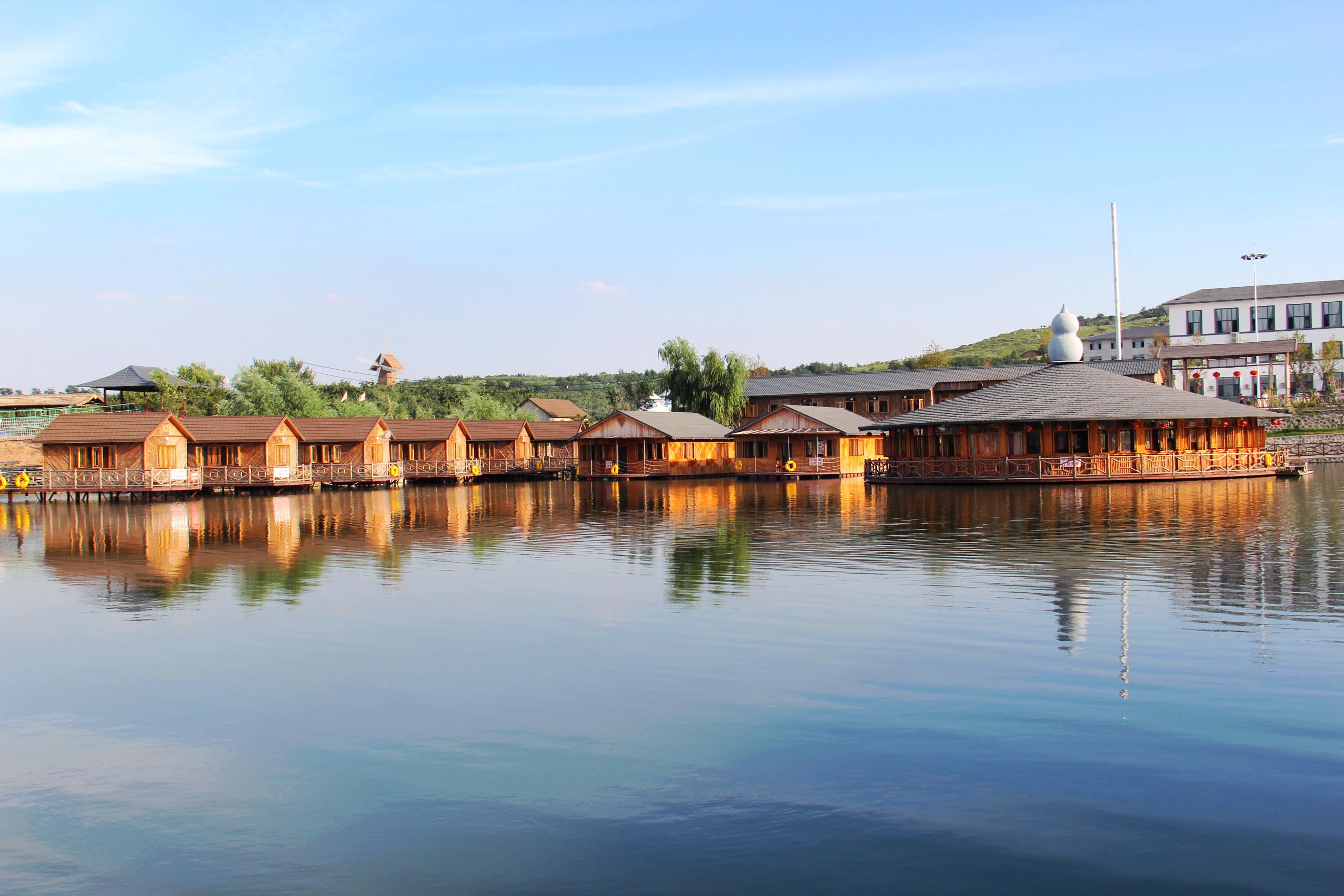 位于汤岗子新城于家沟村,占地面积340亩,集垂钓、采摘、餐饮、住宿、KTV、棋牌、温泉洗浴、游泳、滑沙滑草、骑马、真人CS、动物园、儿童乐园、水上乐园、旅游观光为一体的综合性休闲农业度假村。有滑沙滑草、户外激流勇进、空中索道、骑马等特色项目。整个山庄以真山真水的自然景观为主旋律,配合长城、水帘洞、假山喷泉、十二生肖等人文景观,在鲜花绿草中穿行营造出小桥流水、绿荫长廊等人间仙境,使人仿佛置身于世外桃源,流连忘返。
