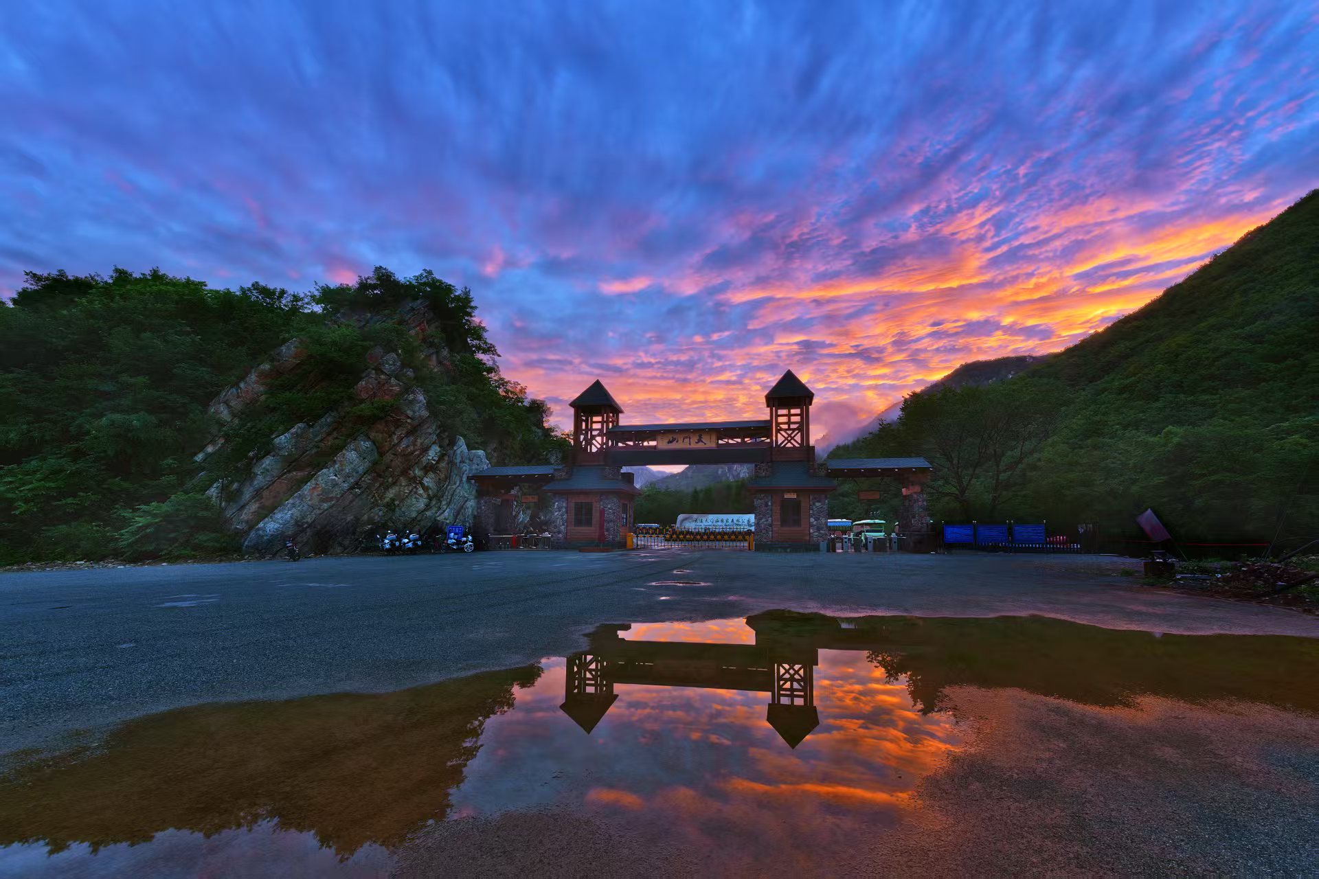大连天门山国家森林公园地处庄河市以北66公里,距大连市220公里,核心景区占地面积40平方公里,与盖县、营口、岫岩交界,地理交通十分便捷。景区内共分为五大观景区和漂流区,拥有峰、石、洞、谷、漂流等奇观异景,造就了著名的天门峰著名景点30余处,海拔800米以上的山峰有36座,最高峰是逗云峰海拔926米。向世人展示着天门山的雄、险、峻、奇、秀,千山万壑无不拥有层峦叠嶂的神韵。天门峡漂流全长10公里左右,自然落差共计91米,有大约一半的的河道水流急,落差大,全程跌宕起伏,九曲十弯,漂流2-3小时的时间;水质丰富,水量清澈,所以被游客称为“矿泉水漂流”。漂流之前可以体验电音派对、DJ喊麦、北方泼水节、舞蹈演员表演,洒水车、水炮、水枪,工作人员与游客一起互动,氛围感直接拉满。