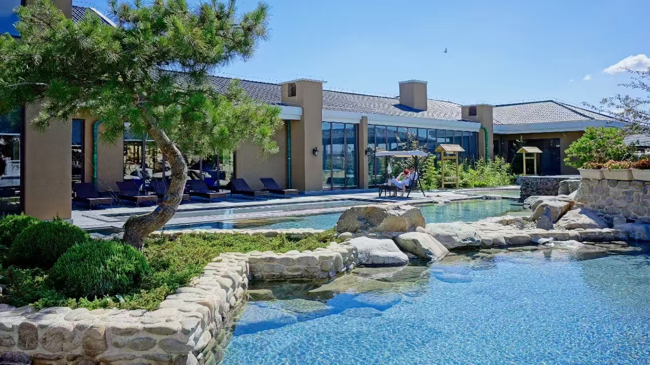位于大连市金普新区炮台街道申炉村333号,占地4000余亩,建筑面积50000余平方米,是以温泉、滑雪、牧场为主题,集休闲、度假、会议、商务、旅游于一体的综合性旅游景区。景区特色在于铭湖温泉,是大连地区最具盛名的第一家五星级温泉,温泉井井深2600.88米,出水口水温为63℃,日出水量达2000吨。铭湖牧场是集观光体验、休闲娱乐,项目表演等于一体的田园式观光牧场。滑雪场雪域面积达130000平方米,设有高级雪道、中高级雪道、初级雪道各1条,中级雪道2条,雪圈道等。