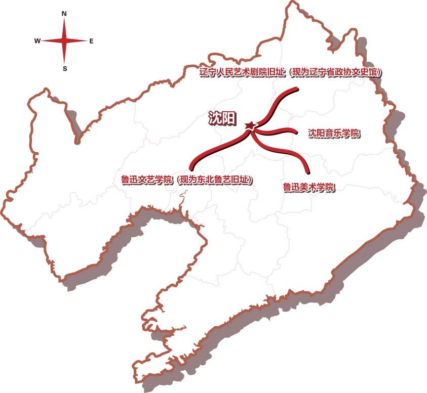 鲁迅文艺学院(现为东北鲁艺旧址)—鲁迅美术学院—沈阳音乐学院—辽宁人民艺术剧院旧址(现为辽宁省政协文史馆)